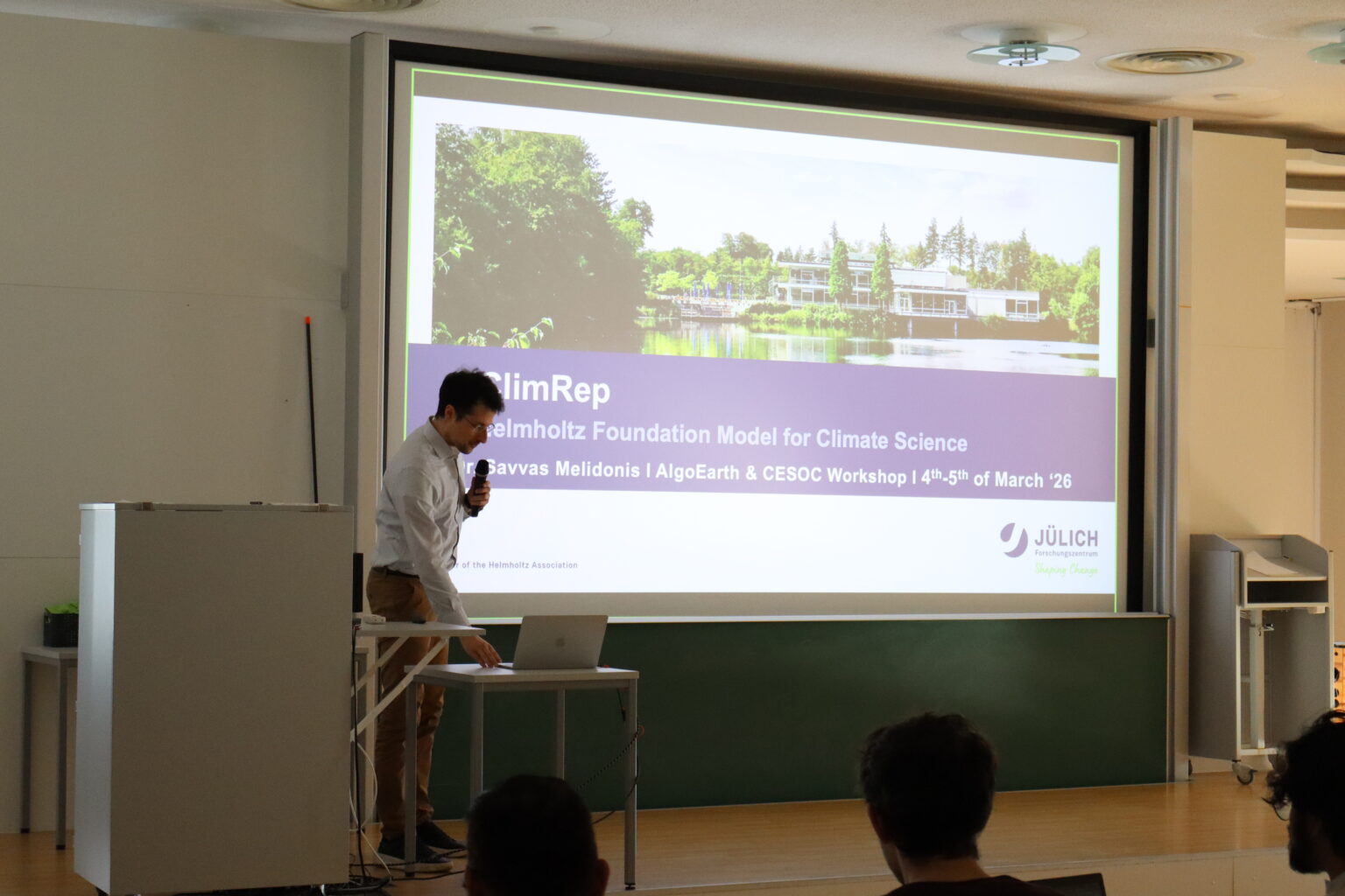 The HClimRep project was presented at the AlgoEarth & CESOC Workshop: Advancing AI Climate Models, held on 4–5 March 2026 at the University of Cologne. The workshop brought together international experts from research institutions, academia, and industry to discuss how artificial intelligence can move beyond short-term weather forecasting toward reliable climate modeling and long-term Earth system understanding. The event focused on key challenges in AI climate science, including limited observational data, complex feedback processes, and the need for new machine-learning architectures capable of representing coupled climate dynamics.